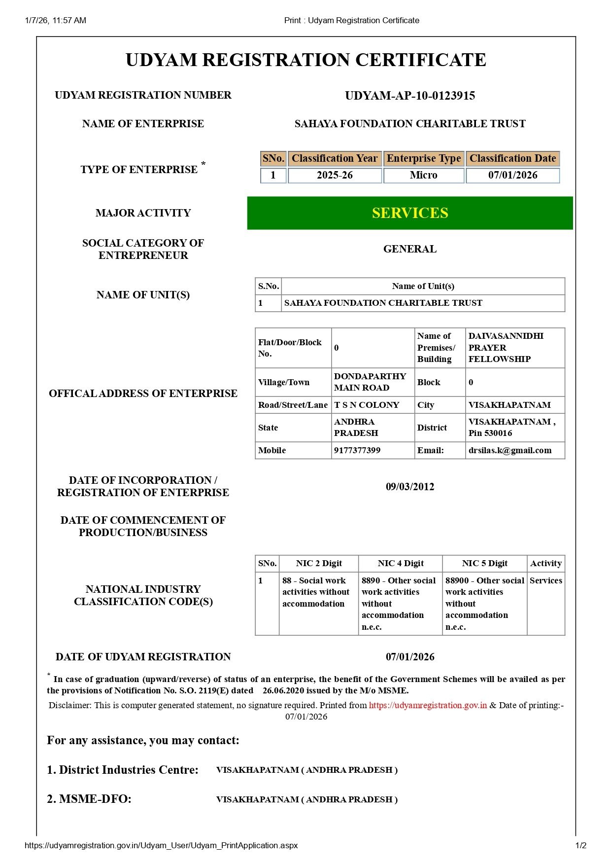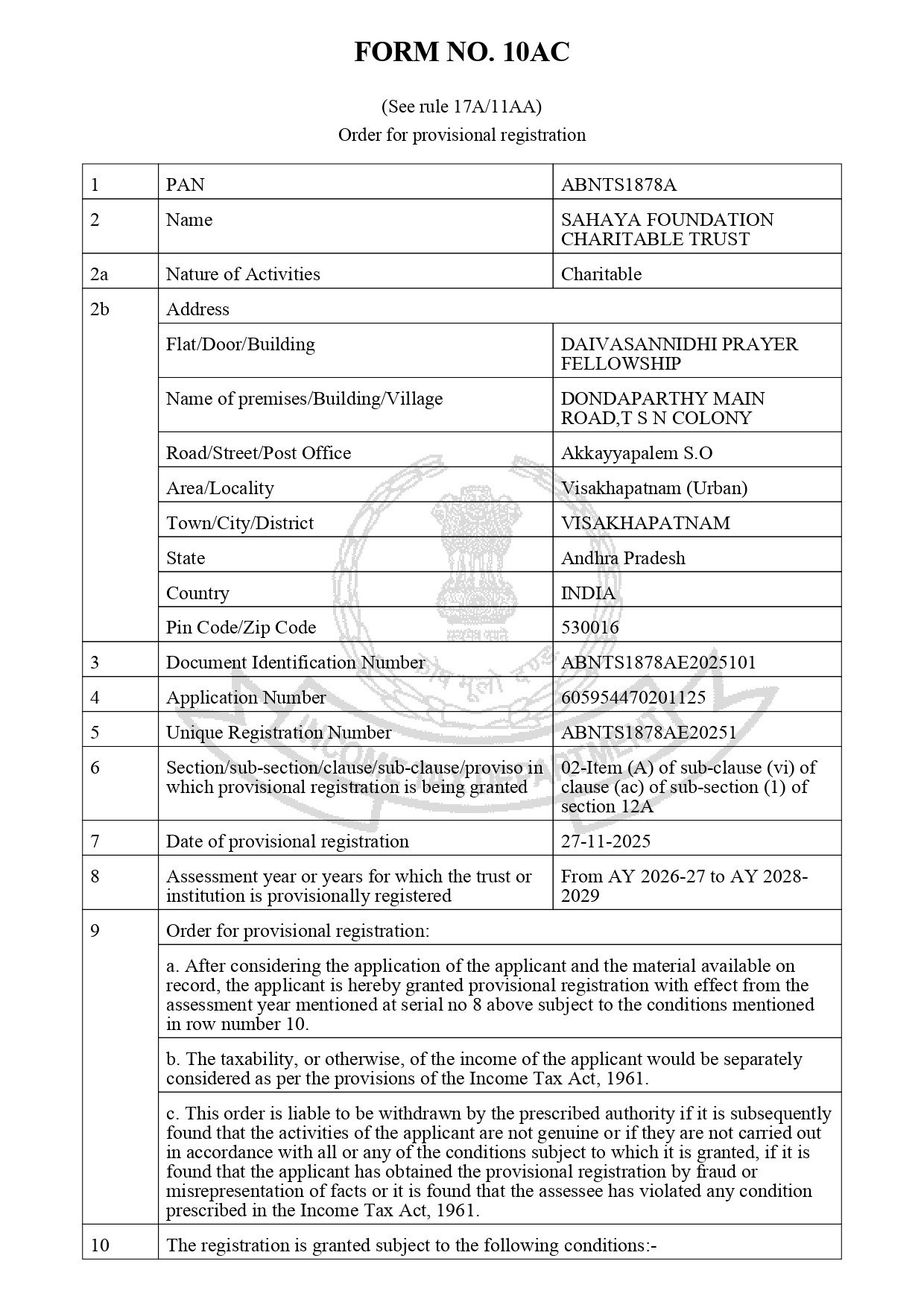 The SAHAYA FOUNDATION CHARITABLE TRUST